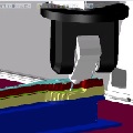 použití 5osého modulu na S-F aplikaci. (sražení hrany drážky v 5 osách). Obráběno CAD/CAM GibbsCAM modulem od ModuleWorks zamčeným na 3 osy. Na stroji DMG MORI, MORI NLX 2500 SY/700, 2021-08