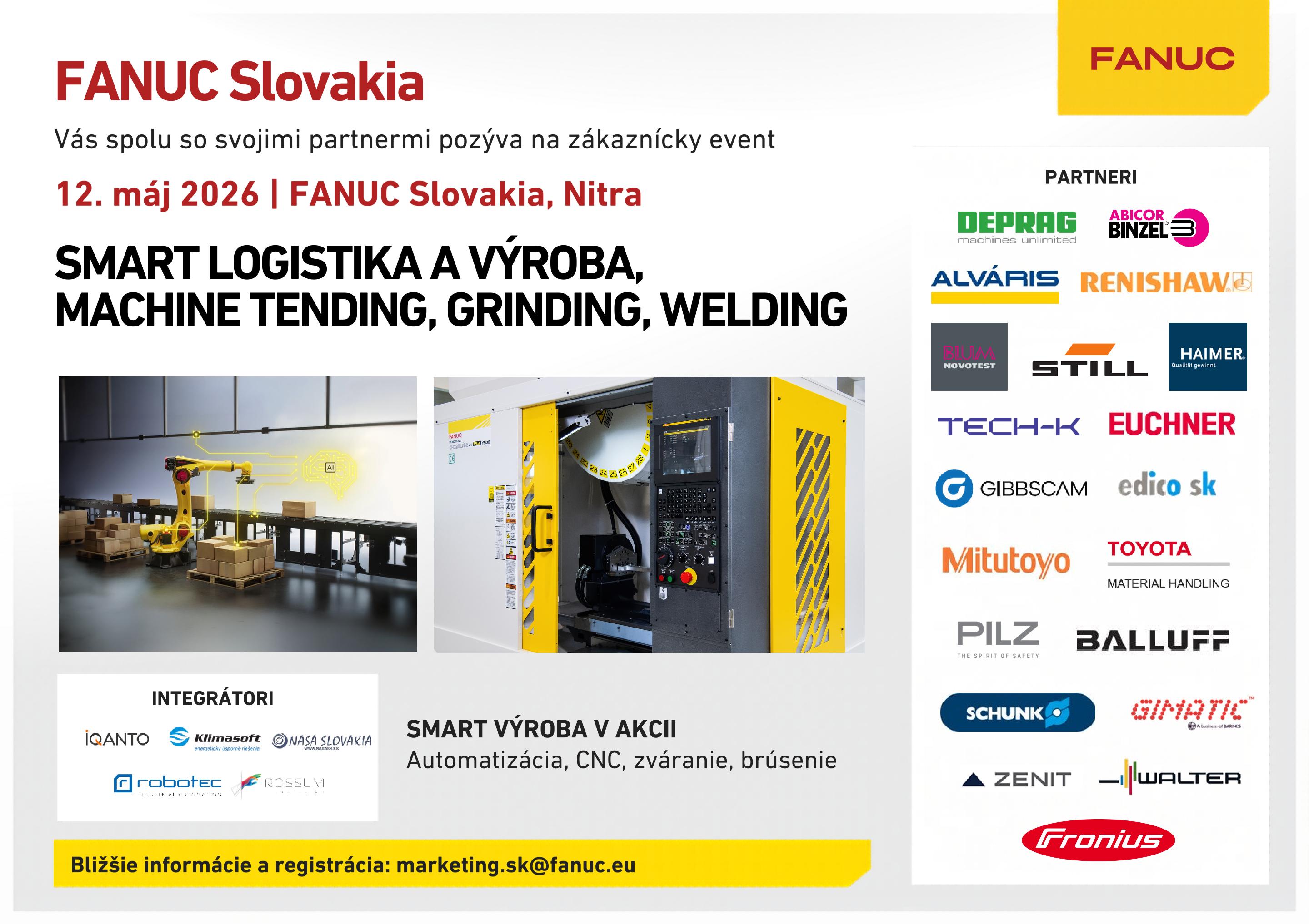 SMART LOGISTIKA A VÝROBA, MACHINE TENDING, GRINDING, WELDING12. 5. 2026, FANUC Slovakia, Nitra Společnost FANUC Slovakia vás spolu se svými partnery, mezi které patří i technology-support, zve na zákaznický event zaměřený na moderní průmyslovou výrobu a automatizaci. Proč přijít?Řešíte automatizaci výroby? Tato akce vám nabídne konkrétní odpovědi i inspiraci z praxe. Za t-support se na vás těší:Radomír Trochta Představíme vám:GibbsCAM ve spolupráci s CNCkurzy.sk RegistraceRegistrace probíhá e-mailem marketing.sk@fanuc.eu či přes registrační formulář.